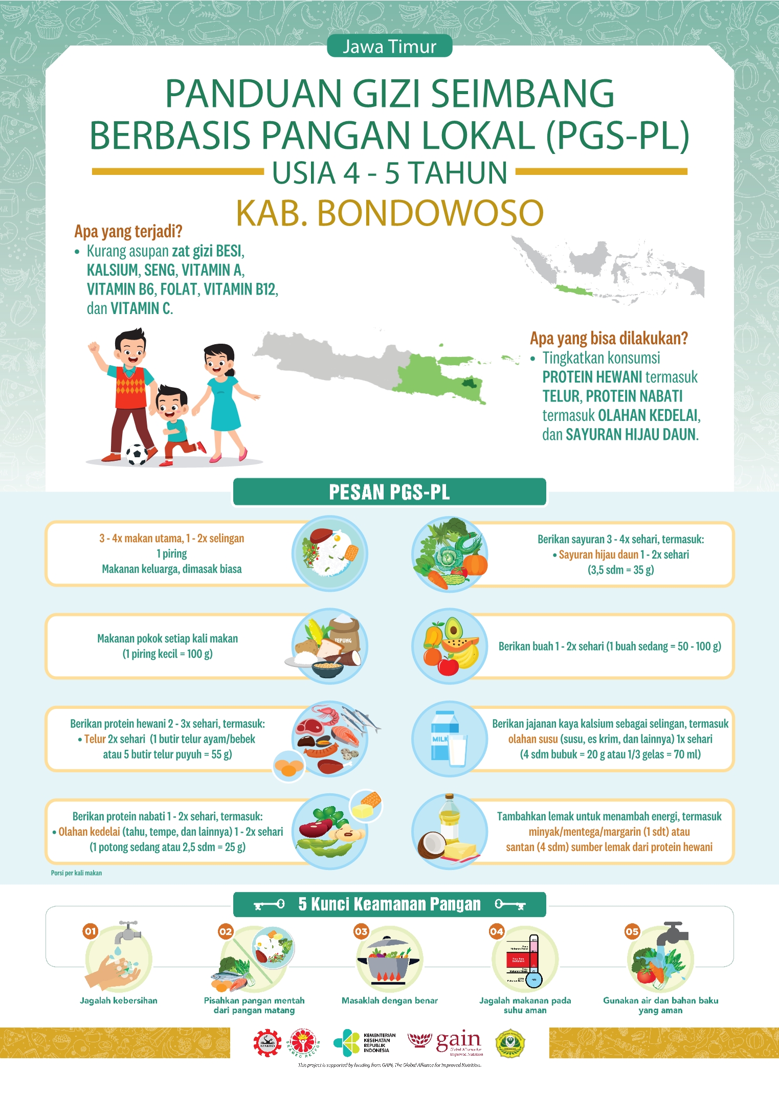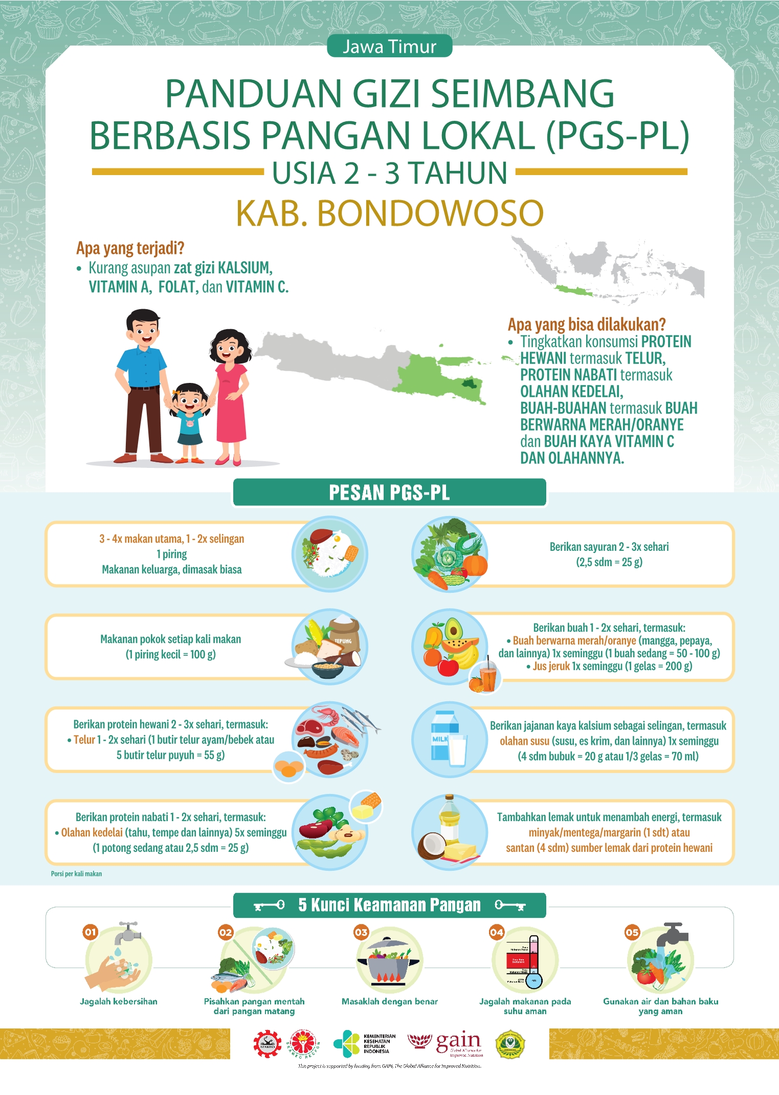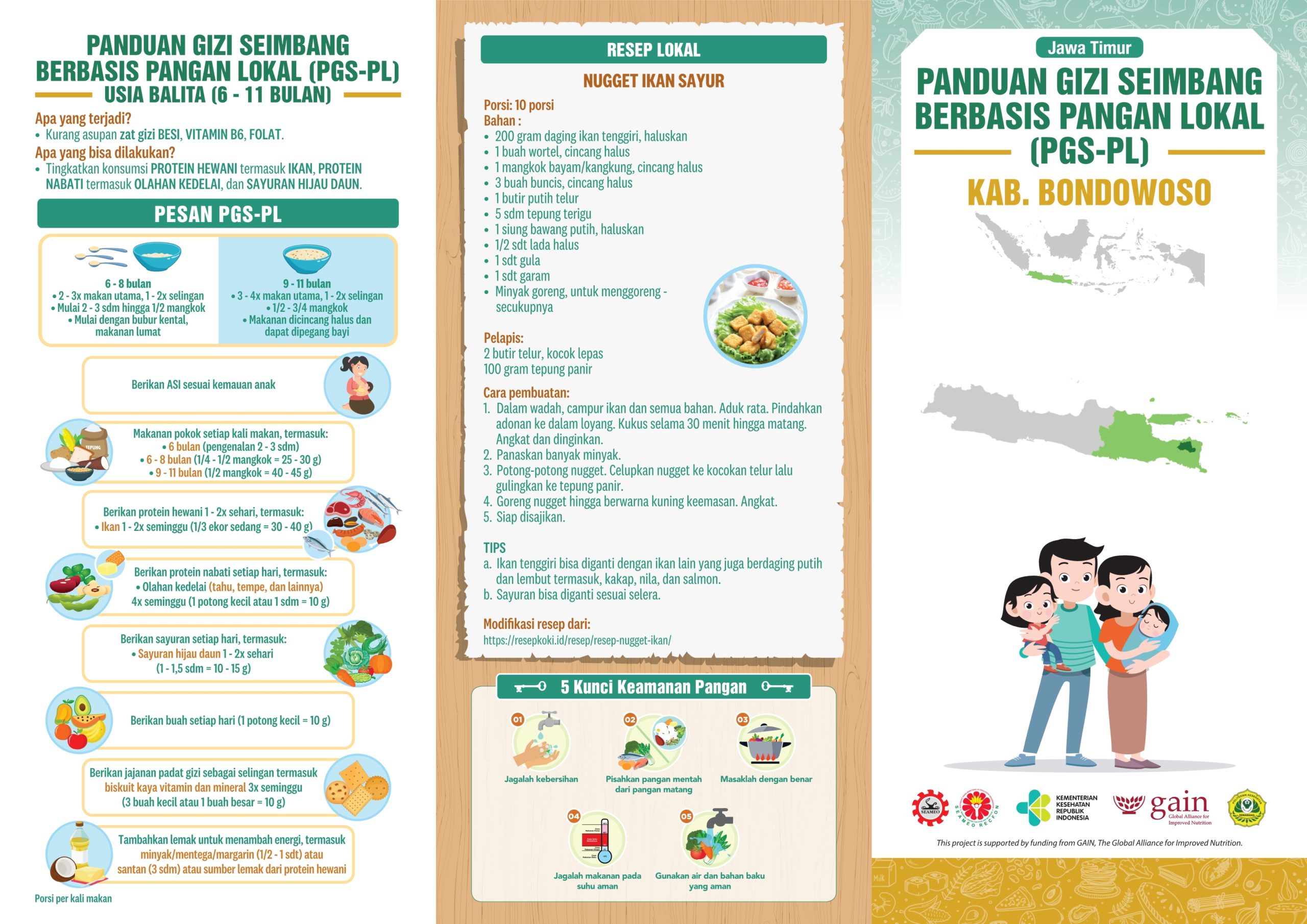 Kabupaten Bondowoso secara geografis berada di bagian timur Provinsi Jawa Timur dengan jarak dari Ibu Kota Provinsi (Surabaya) sekitar 200 km. Luas wilayahnya 1.560,10 Km² atau sekitar 3,26% dari luas total Provinsi Jawa Timur, yang terbagi menjadi 23 kecamatan, 10 kelurahan, 209 desa dan 913 dusun. Resep lokalnya adalah Nugget Ikan Sayur yang kaya akan vitamin!