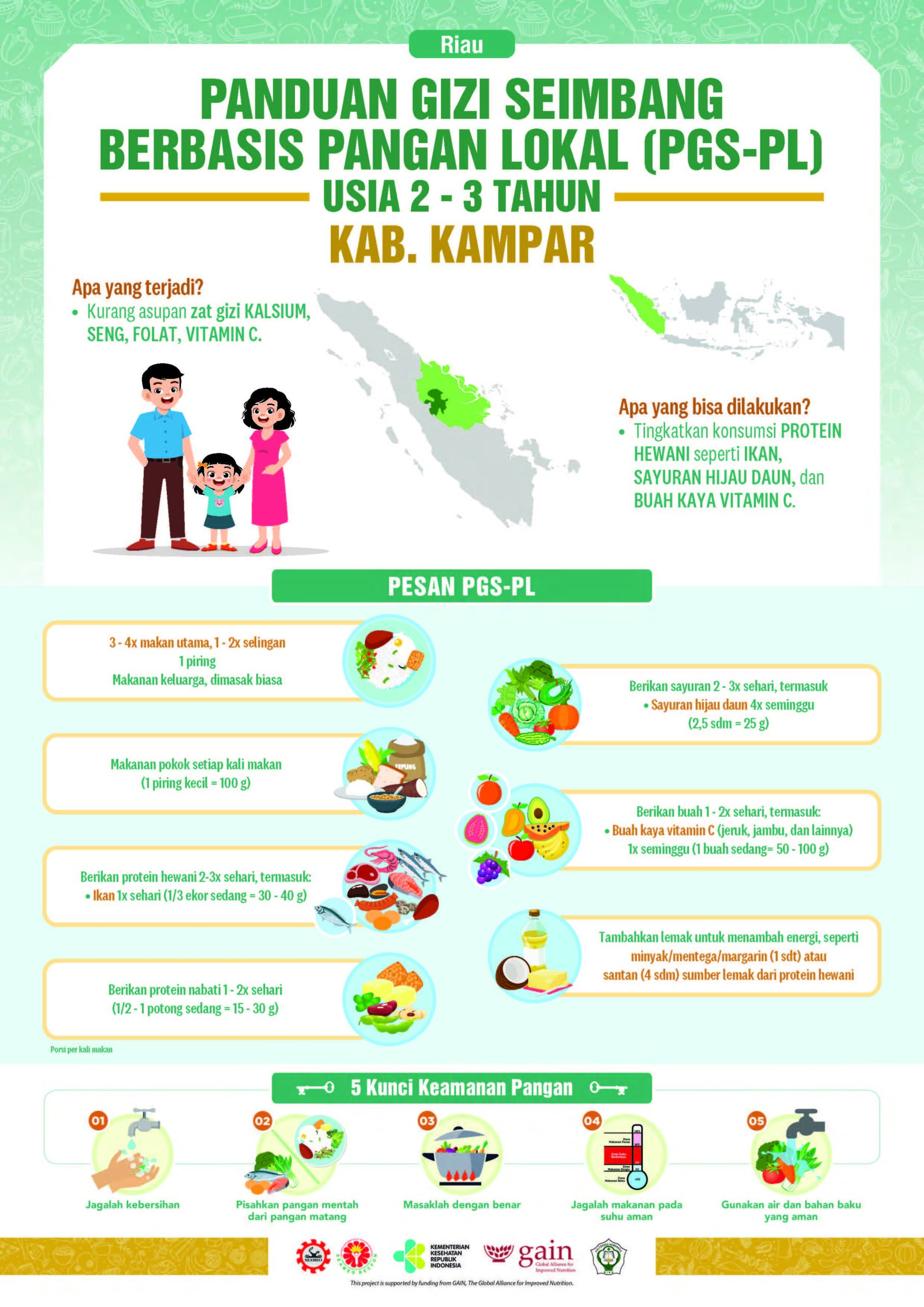 Kabupaten Kampar terletak di Provinsi Riau dan terdiri dari 21 kecamatan. Di daerah ini terdapat 2 sungai besar yang memiliki fungsi strategis dalam kehidupan ekonomi masyarakatnya, yaitu Sungai Kampar dan Sungai Siak. Resep lokal dari daerah ini yaitu Ikan Kerutup Daun Bayam. Kira-kira Ikan Kerutup seperti apa ya? Yuk, unduh resepnya!