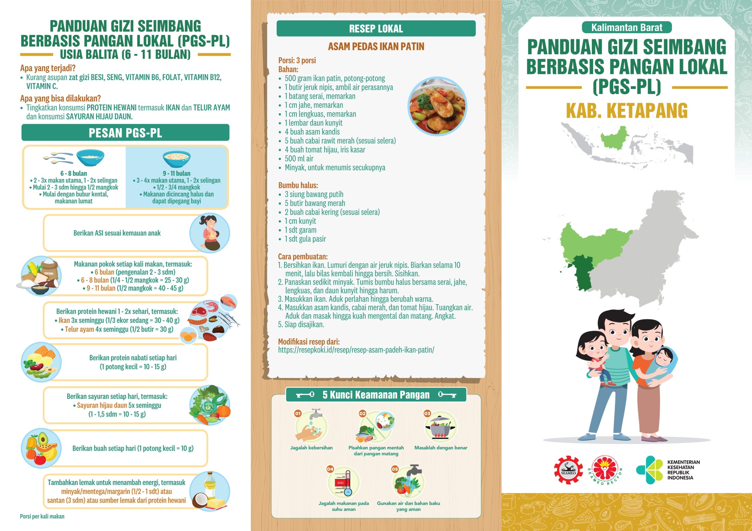 Kabupaten Ketapang merupakan Kabupaten terluas di Provinsi Kalimantan Barat. Daerah ini terbagi menjadi 20 kecamatan, dimana 13 kecamatan berada di daerah perhuluan dan selebihnya merupakan kawasan pesisir, yaitu sebagian wilayah desanya berbatasan langsung dengan laut/pantai. Memiliki resep lokal olahan ikan yaitu Asam Pedas Ikan Patin. Menarik, bukan? Coba dimasak, yuk!