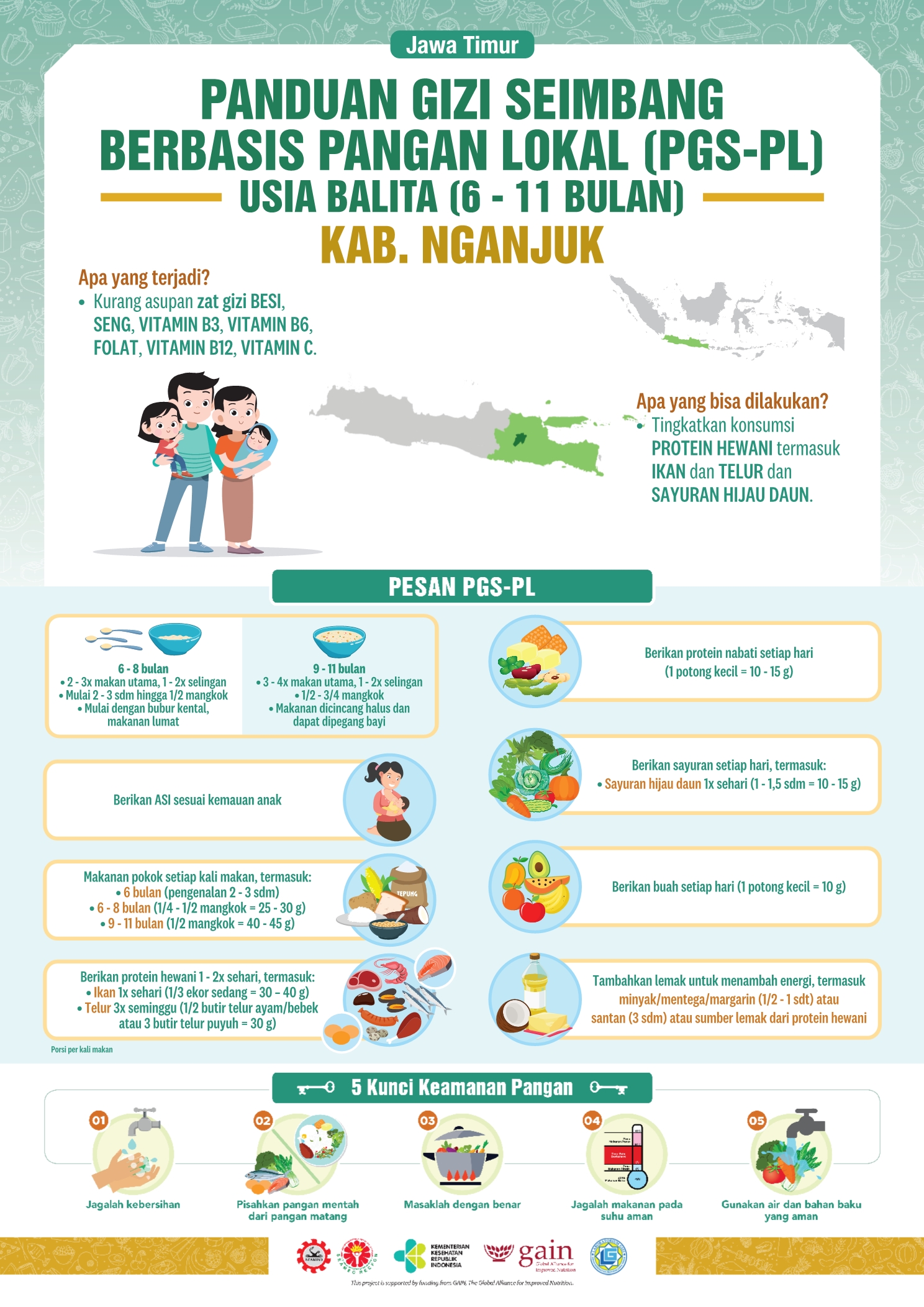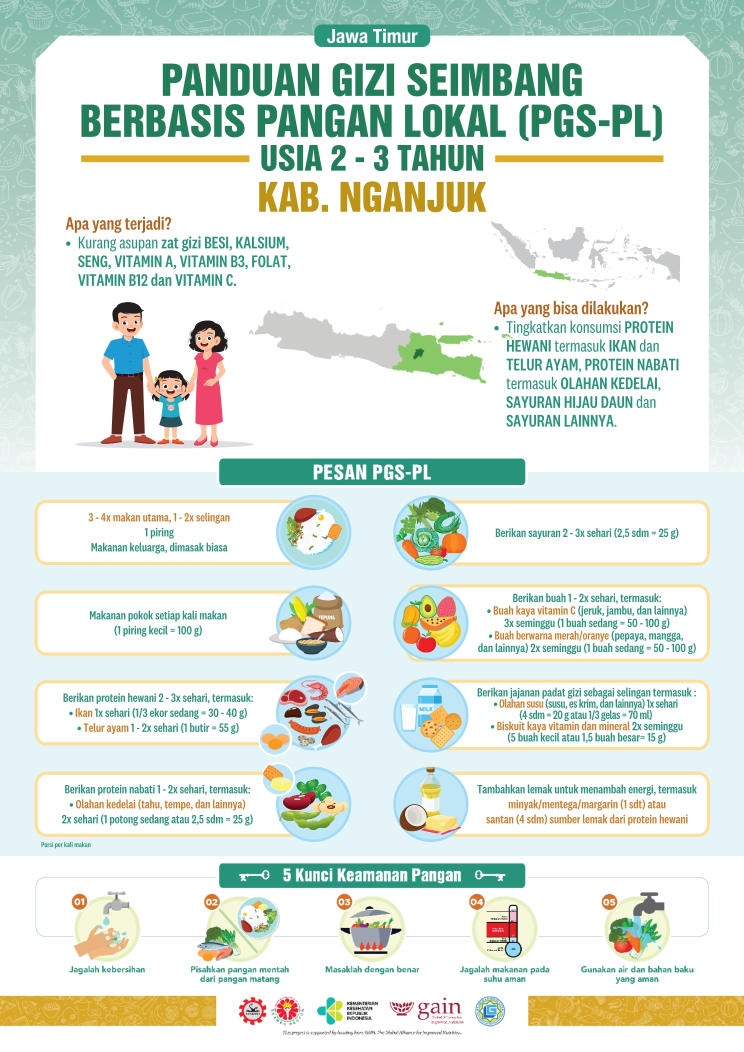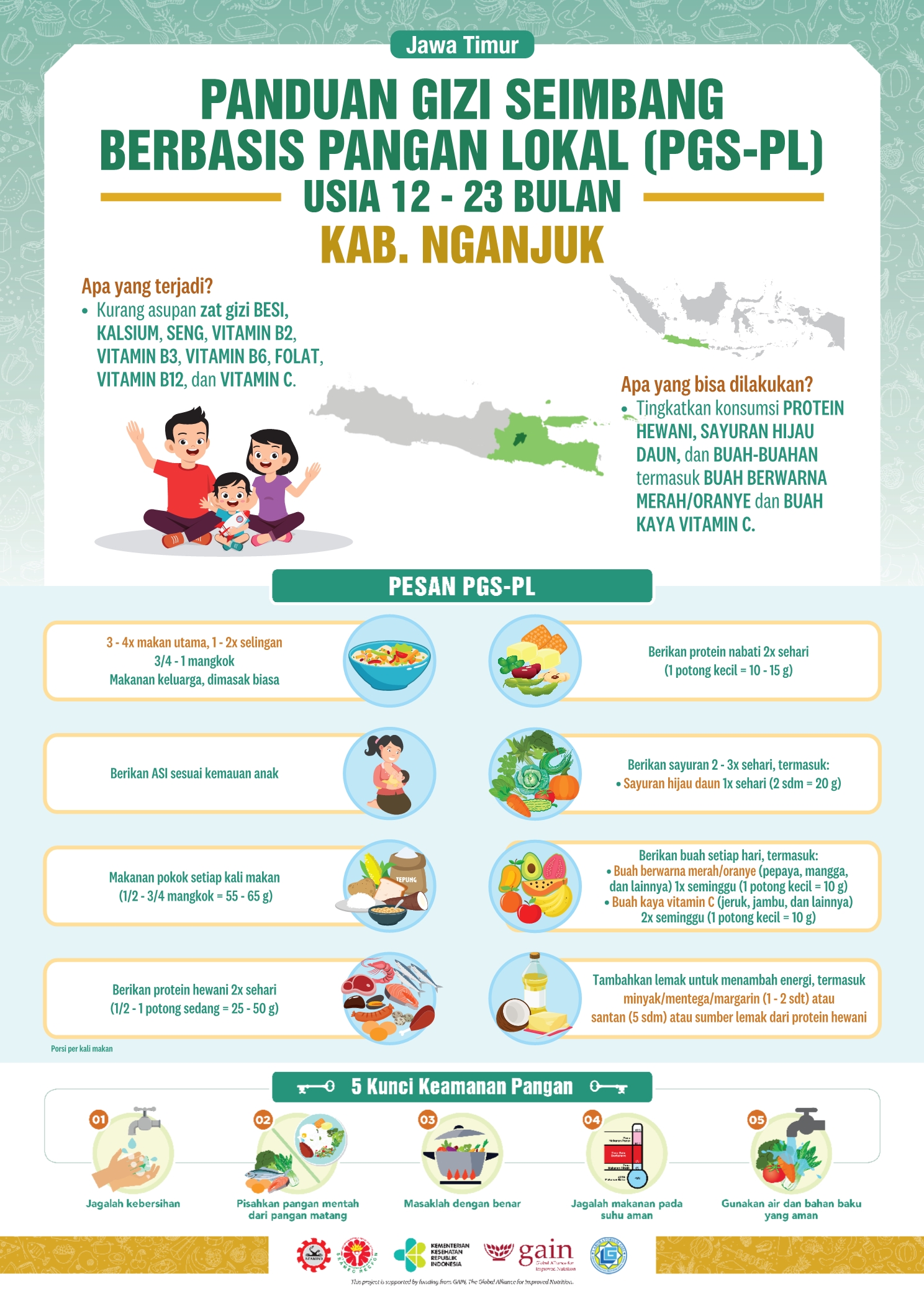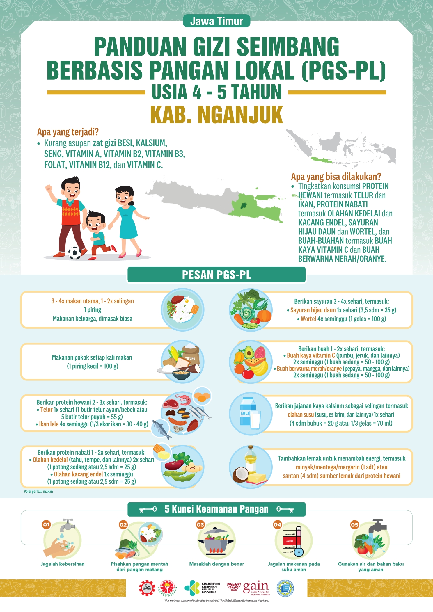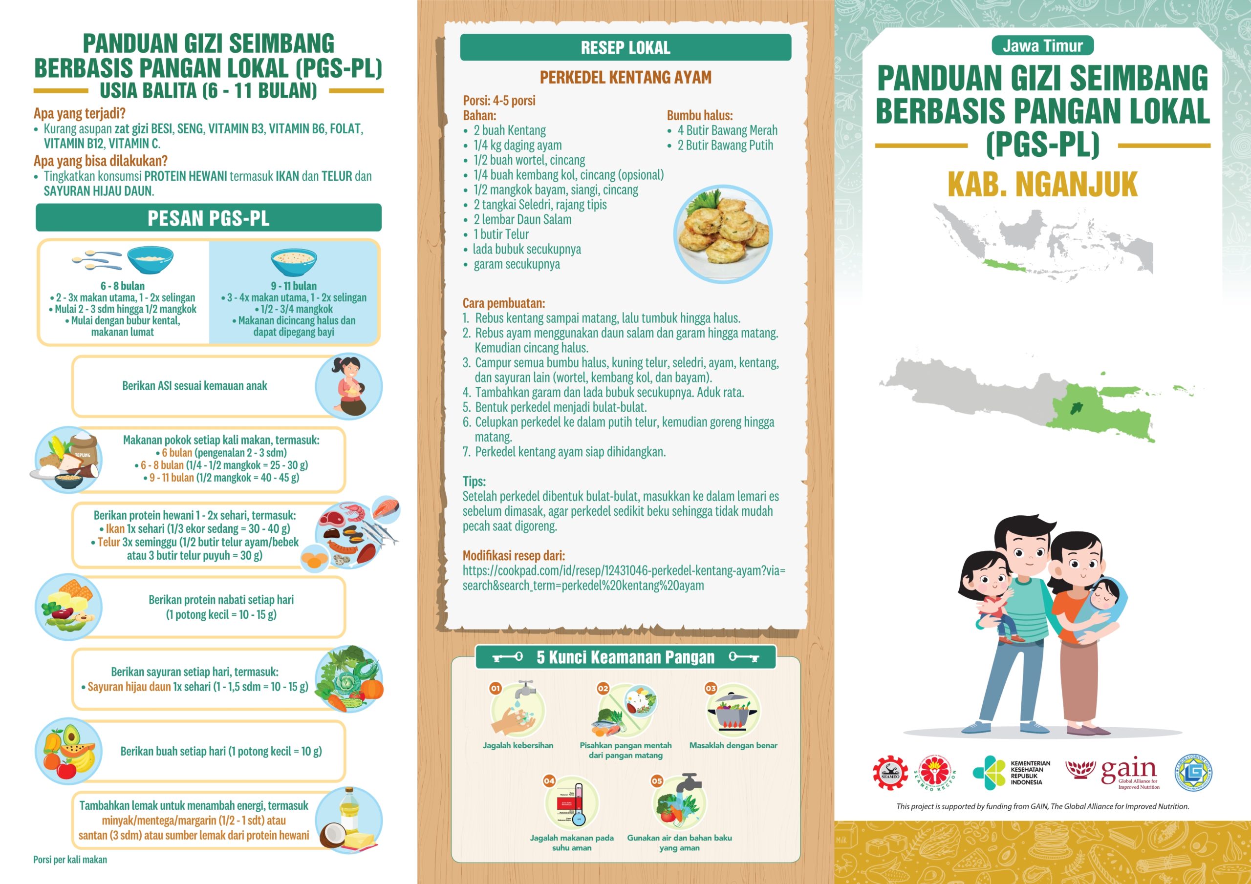 Kabupaten Nganjuk merupakan salah satu kabupaten di Provinsi Jawa Timur yang terletak di bagian barat dari wilayah Provinsi Jawa Timur. Sektor pertanian masih merupakan sektor dominan di Kabupaten Nganjuk, terutama Pertanian Tanaman Pangan. Resep lokalnya adalah Perkedel Kentang Ayam. Perkedel kentang sudah biasa, kalau perkedel kentang ayam bagaimana ya? Cek resepnya dong!