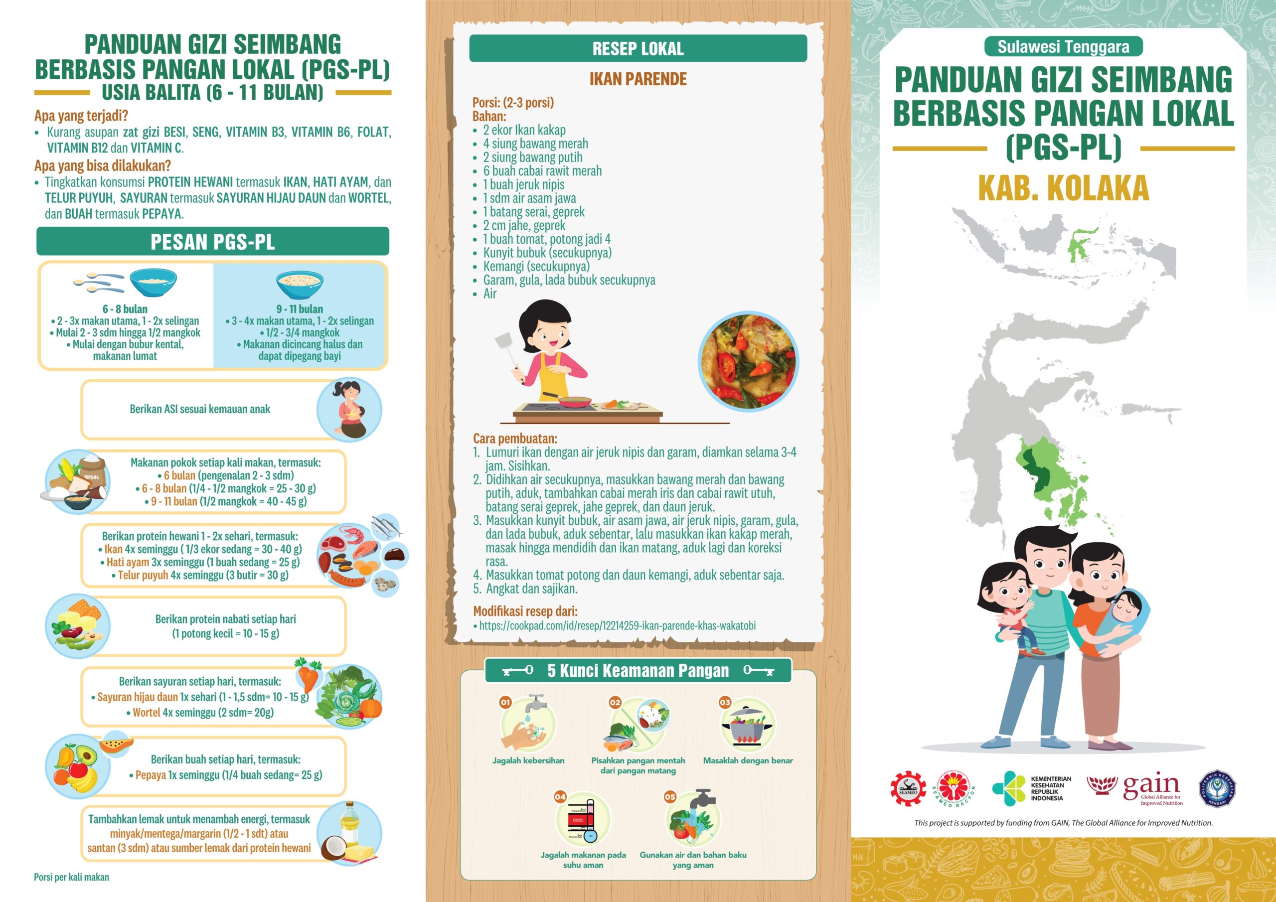 Kabupaten Kolaka merupakan bagian dari Provinsi Sulawesi Tenggara. Kabupaten Kolaka mempunyai beberapa buah pulau baik besar maupun kecil, yaitu: Pulau Padamarang, Lambasina Kecil, Lambasina Besar, Buaya, Pisang, Maniang dan Pulau Lemo. Daerah ini memiliki resep lokal olahan dari ikan yaitu Ikan Parende. Apa sih Parende itu? Lihat resepnya yuk!