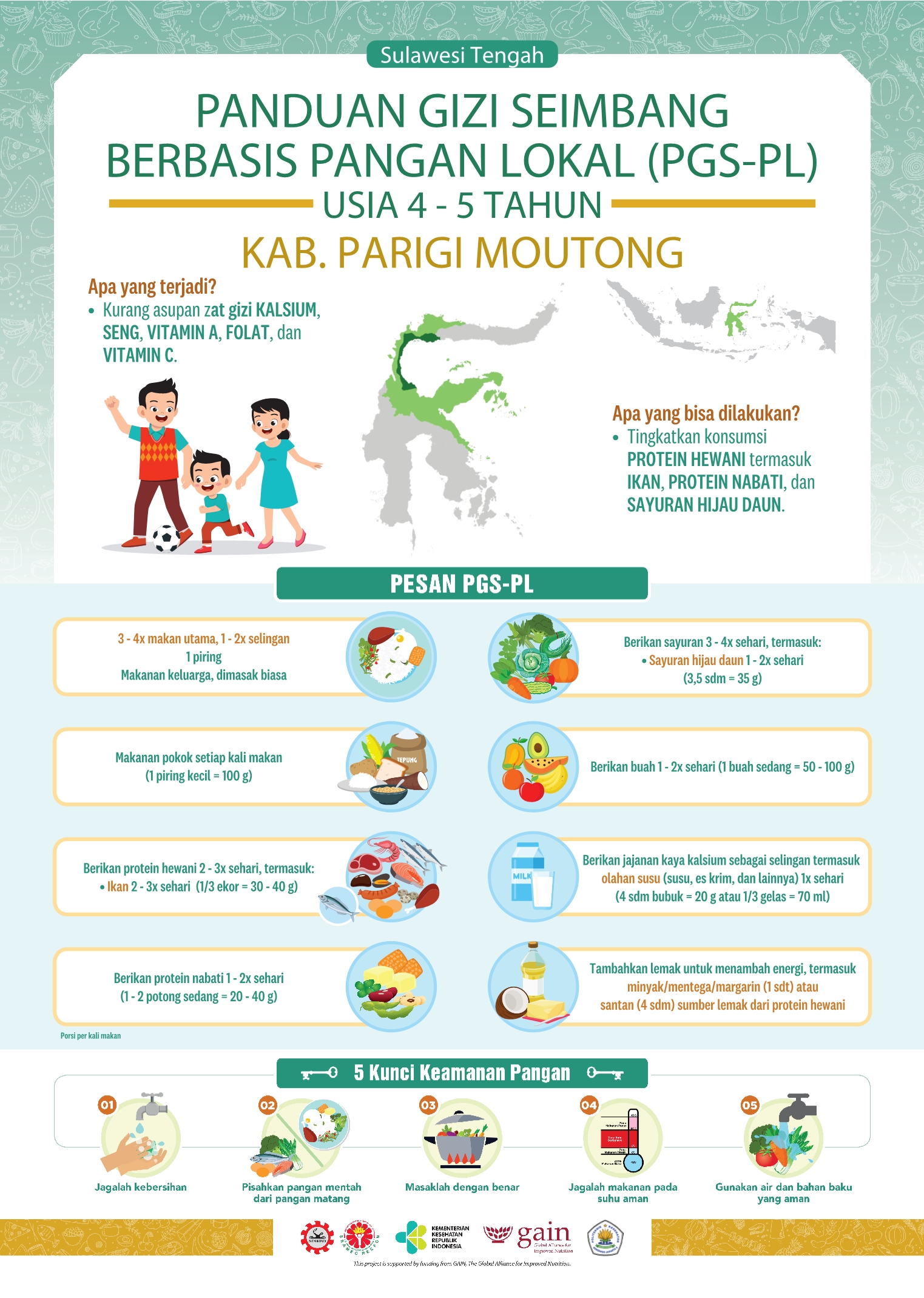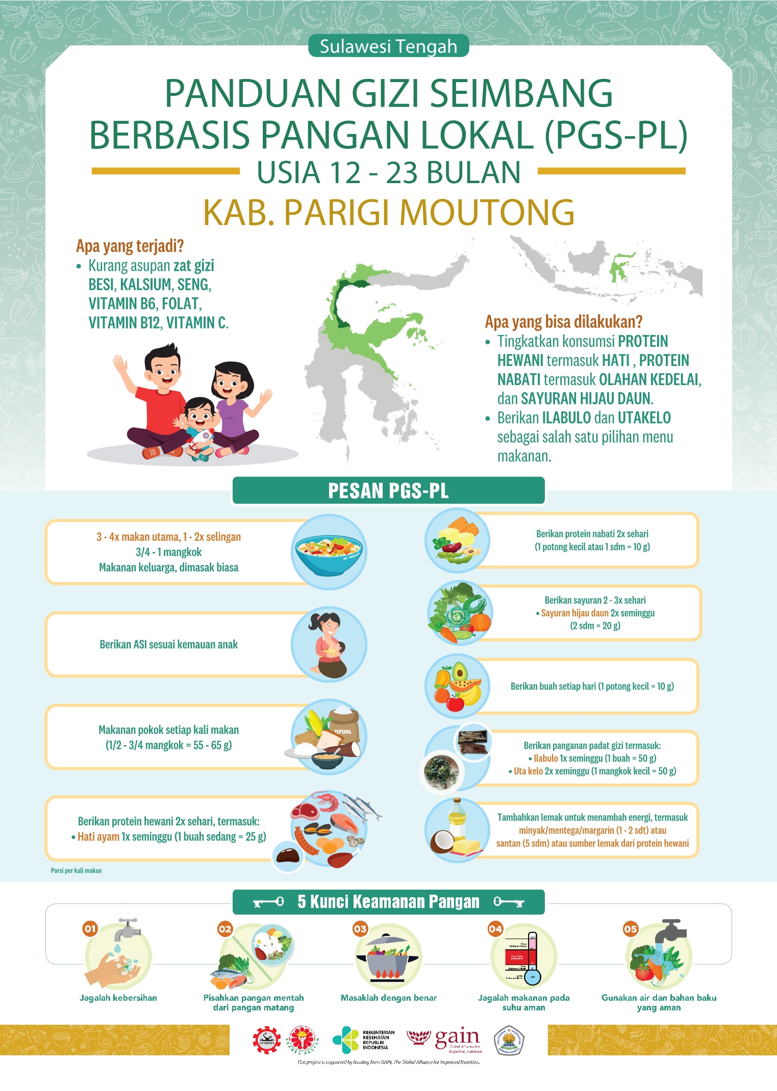 Kabupaten Parigi Moutong berada di provinsi Sulawesi Tengah. Ibu kota kabupaten ini terletak di Parigi. Kabupaten Parigi Moutong melingkupi sebagian besar daerah pantai timur Sulawesi Tengah dan Teluk Tomini. Resep lokalnya berbahan dasar jagung dan ikan yang disebut Binte Bilihuta. Penasaran bagaimana cara membuatnya? Silahkan unduh resepnya!